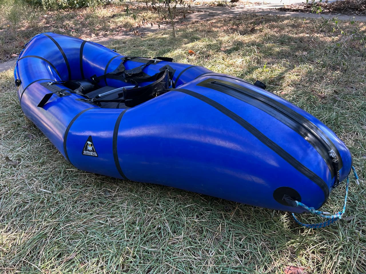 Boat will ship with the standard seat, footrest, and thigh straps, as well as the original mesh carrying sack and inflation bag. I added grab lines and a tail that I can also leave or remove as desired.